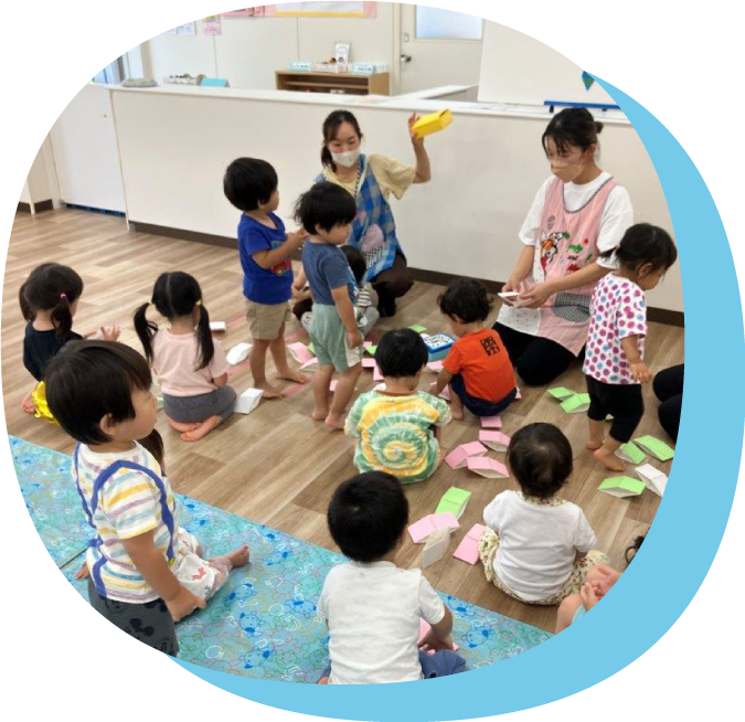 カリキュラムにとらわれず、子ども一人ひとりと丁寧にかかわり、日々の生活の中で大切なものを見つけてあげられるように沢山の経験を増やし、良いところを伸ばせるように保育をしたいと考えています。